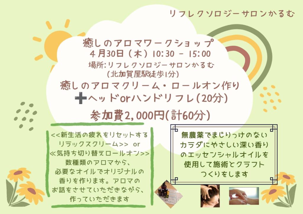 心とカラダを癒す技術を学ぶ、リフレクソロジー講座とアロマ講座をご紹介しております。ご自身やご家族のケアからプロを目指す方まで、幅広いニーズに応えます。入会金不要で一回から参加可能なので、気軽に始められるのも魅力です。